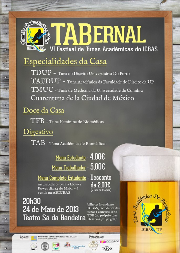 É a 24 de maio de 2013, que a Tuna Académica de Biomédicas apresenta mais uma edição do seu festival, O VI TABernal. Mantendo a Tuna Feminina de Biomédicas como tuna convidada, este festival vai além fronteiras e tem a Cuaretuna de la Ciudad de México como tuna a concurso, diretamente do México para o Teatro Sá da Bandeira. Estiveram ainda presentes a TDUP- Tuna do Distrito Universitário do Porto, a TAFDUP- Tuna Académica da Faculade de Direito da Universidade do Porto e a TMUC- Tuna de Medicina da Universidade de Coimbra.